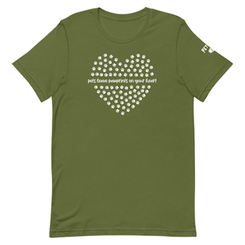 Wear your message with this powerful statement, "Pets leave pawprints on your heart." Don’t forget to have your business cards ready to hand out with your contact info!